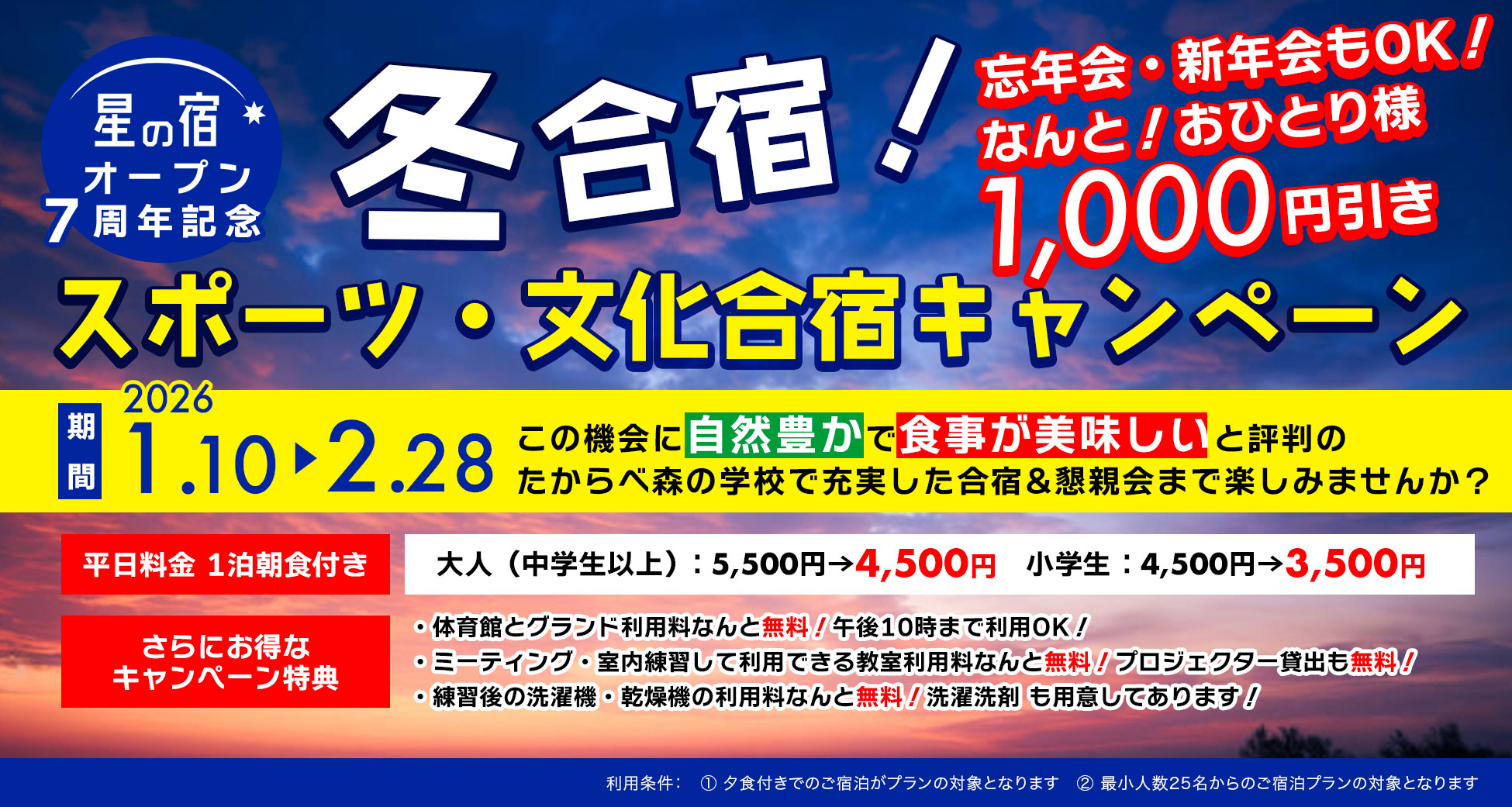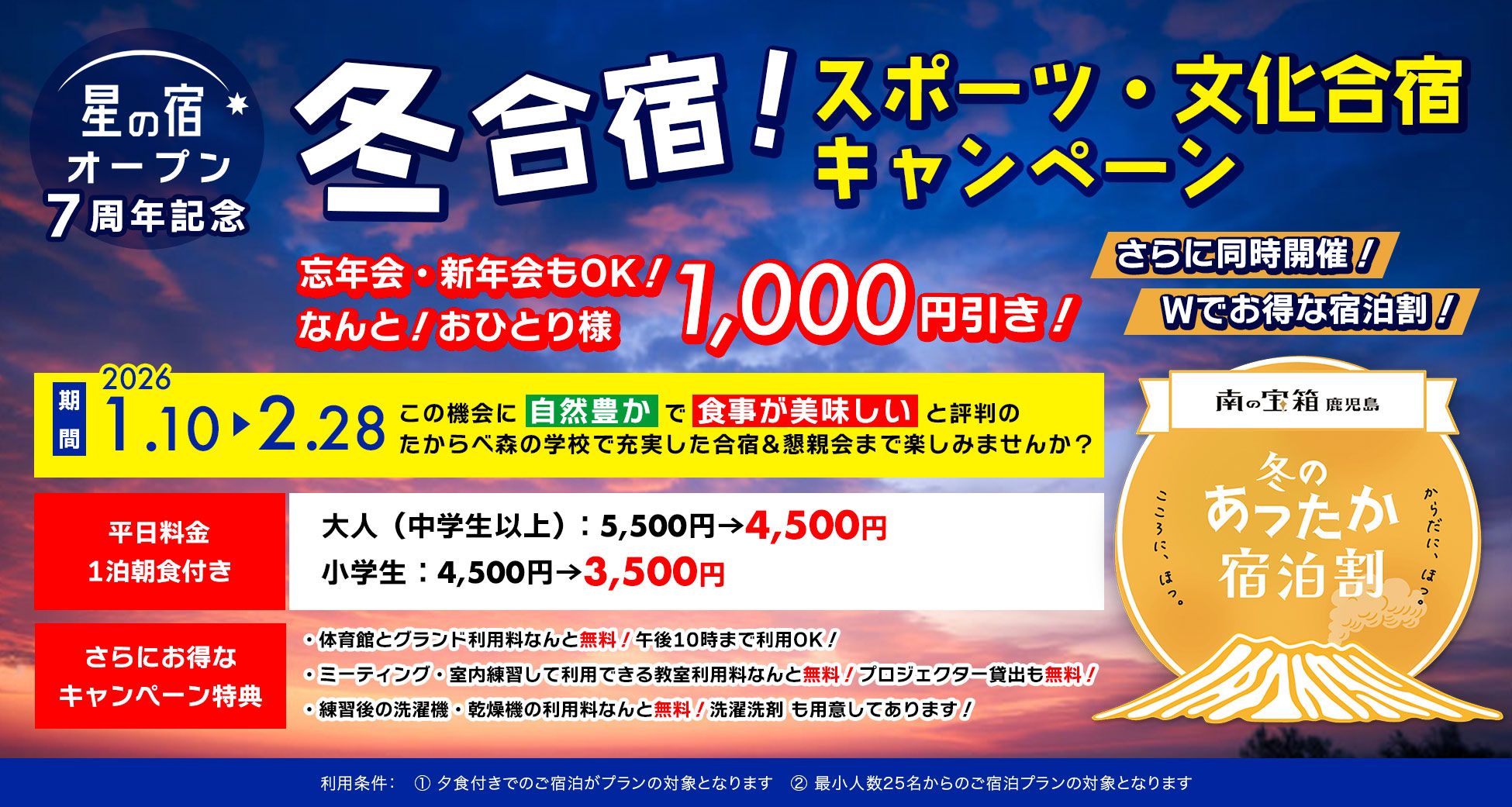 ※6名以下でご利用の場合は、素泊まりの利用はできません。必ず夕食・朝食がセットとなります。
