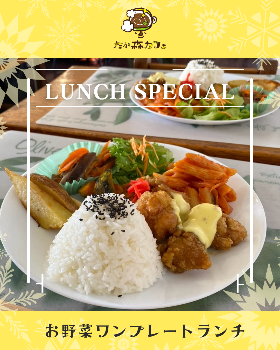 ランチは、たか森カフェ人気メニュー「お野菜ワンプレートランチ」☀